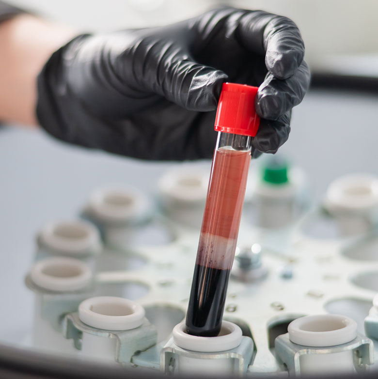 원심분리를 통해 혈소판이 풍부한 혈장을 분리하고, 고농도 성장인자를 추출합니다.